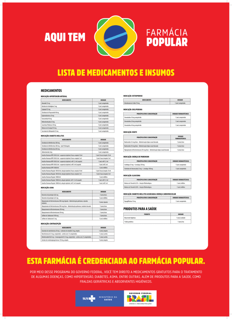 Aqui na Ultra Santa Cruz, você tem acesso aos medicamentos da Farmácia Popular.